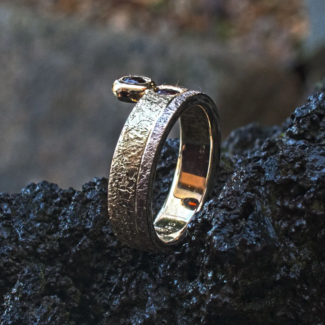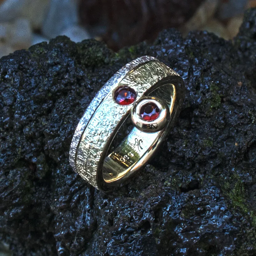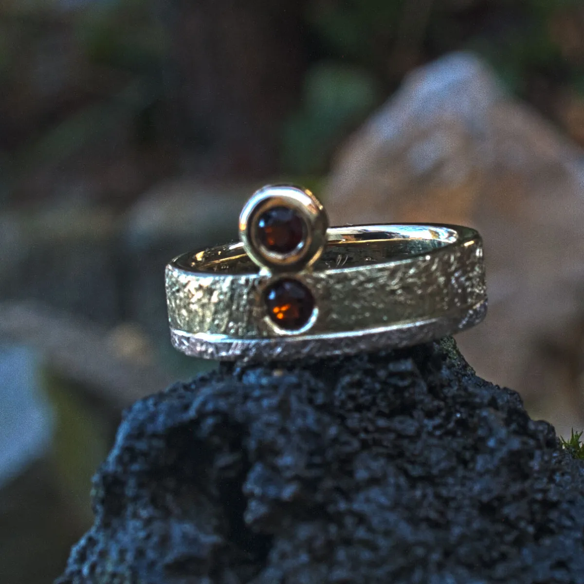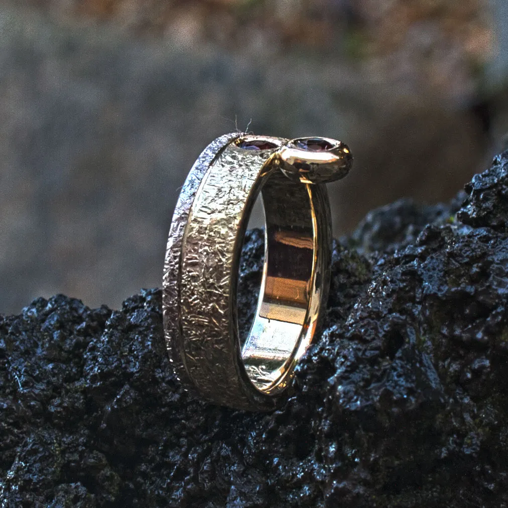 Ring aus Gelbgold und Weißgold mit zwei Granaten Ring mit Steinen